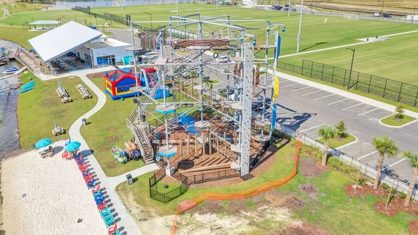 Nona Adventure Park in Lake Nona, Orlando, offers a variety of attractions including a floating Aqua Park, a Wake Cable Park, and a 60-foot Climbing Tower with ropes course and rock walls. The park is located at 14086 Centerline Drive, Orlando, FL 32827.